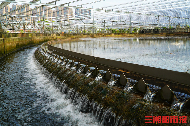 三湘都市報(bào)記者在現(xiàn)場看到,巨大的圓形水池被分成了內(nèi)外兩環(huán),外環(huán)是夾雜了活性污泥的水體,內(nèi)環(huán)則是向外涌出的一股股清澈水體,內(nèi)環(huán)表面還有一個(gè)緩緩轉(zhuǎn)動(dòng)著的刮吸泥機(jī),協(xié)助排除失去了活性的污泥。